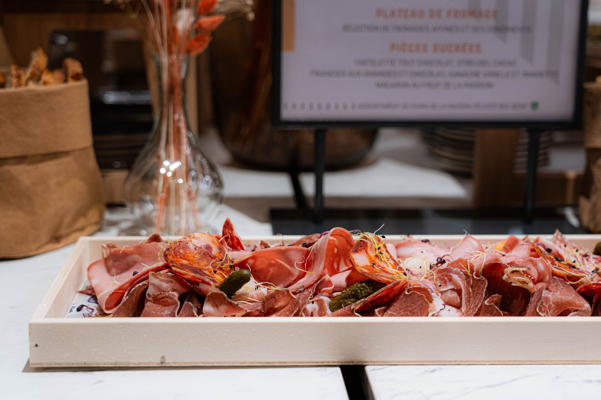 Réception cocktail : Profitez d'une sélection raffinée de plats servis en continu avant, pendant et après le spectacle.